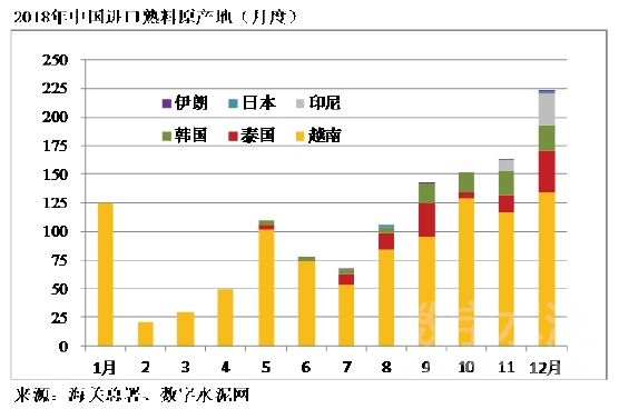 3、熟料進(jìn)口量來源國主要來自越南、泰國和韓國