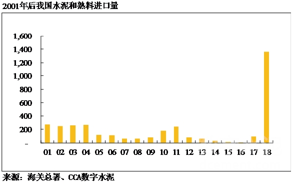 2017年以前,中國水泥年進(jìn)口量最多不到300萬噸,2016年更是達(dá)到了歷史低谷的6.5萬噸。但隨著我國沿海地區(qū)熟料價格高企,2018年以水泥熟料為主要產(chǎn)品的進(jìn)口量爆發(fā)性增長,僅當(dāng)年的進(jìn)口量就達(dá)到1363萬噸,比2005-2017年13年進(jìn)口量的總和還多。