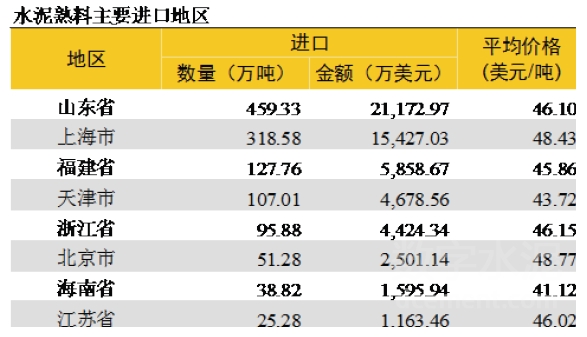 從進(jìn)口熟料的區(qū)域來看,山東占總進(jìn)口量的36%,位于長三角區(qū)域的上海、浙江、江蘇合計占35%,華南福建、海南兩省合計占13%。