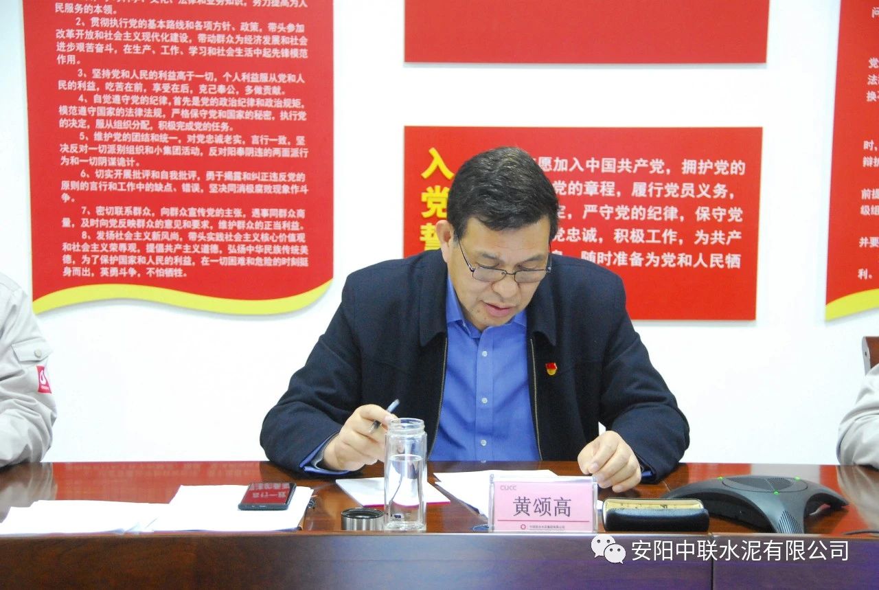 按照中國(guó)聯(lián)合水泥黨委關(guān)于認(rèn)真開好2020年度民主生活會(huì)通知要求,2月24日上午,安陽中聯(lián)2020年度黨員領(lǐng)導(dǎo)班子民主生活會(huì)在公司黨員活動(dòng)室召開。中國(guó)建材股份黨委常委、執(zhí)行董事、副總裁,中國(guó)聯(lián)合水泥黨委書記、董事長(zhǎng)崔星太通過視頻連線督導(dǎo)會(huì)議并作點(diǎn)評(píng)講話。中國(guó)聯(lián)合水泥黨群工作部主任侯萍、紀(jì)檢監(jiān)察室副主任董治及安陽中聯(lián)黨委委員、領(lǐng)導(dǎo)班子成員參加會(huì)議。安陽中聯(lián)黨委書記、總經(jīng)理黃頌高主持會(huì)議。